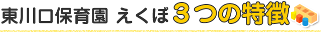 東川口保育園 えくぼは「あそぶ」「たべる」「しっかり眠る」を理念として開園致しました。